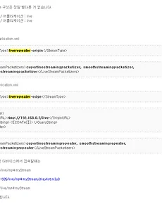RTMP3 wowza + nginx(rtmp) + centOS 설정 wowza + nginx(rtmp) + centOS 설정 구성 [Encoder] - [Oring Wowza ] - [Relay Wowza ] - [Ngonx + rtmp ] 버전 Wowza : service WowzaStreamingEngin 4.0 OS : CentOS 5.5 Nginx : 1.4.2 설정. VM 1 : 192.168.0.173 (wowza origin) 와우자 설치시, 자바설치 할것 : yum install java-1.7.0-openjdk-devel /usr/local/WowzaStreamingEngine/conf/live-test Application.xml 12345 liverepeater-origin.. cupertinostreamingpacketizer, sanjosestre.. 2019. 3. 4. nginx + ffmpeg + hls (vod & mp3) 설정 nginx + ffmpeg + hls (vod) test * ffmpeg (mp4 -> m3u8) 12ffmpeg -i kollus-test.mp4 -vcodec libx264 -acodec libvo_aacenc -b:v 128k -flags -global_header -map 0:0 -map 0:1 -f segment -segment_time 4 -segment_list_size 0 -segment_list testlist.m3u8 -segment_format mpegts stream%05d.ts Colored by Color Scriptercs - segment 옵션을 통한 m3u8 & ts 파일 생성. * ffmpeg (mp3 -> m3u8) 123 ffmpeg -i a.mp3 -acodec li.. 2019. 3. 4. nginx live (nginx + rtmp + ffmpeg + jwplayer) 설정 Nginx + rtmp + ffmpeg nginx 로 rtmp + hls 스트리밍 Test 시나리오 작성 문서 Test 시나리오 nginx config # /usr/local/nginx/conf/nginx.conf 1234567891011121314151617181920212223242526272829303132333435363738394041424344454647484950515253545556575859606162636465666768 worker_processes 1;events { worker_connections 1024;} # HTTP can be used for accessing RTMP statshttp { access_log /var/log/nginx/access-streaming.log.. 2019. 3. 4. 이전 1 다음